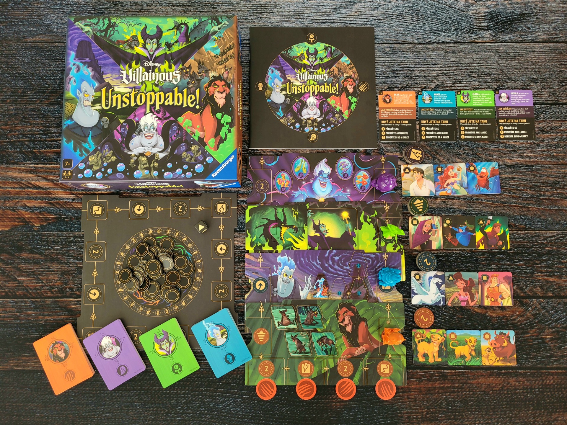Disney Villainous Unstoppable! je dětskou rodinnou kompetitivní hrou, ve které se budete snažit v roli jednoho ze čtyř padouchů uskutečnit jako první svůj zlotřilý plán a ovládnout tak svět temnoty.