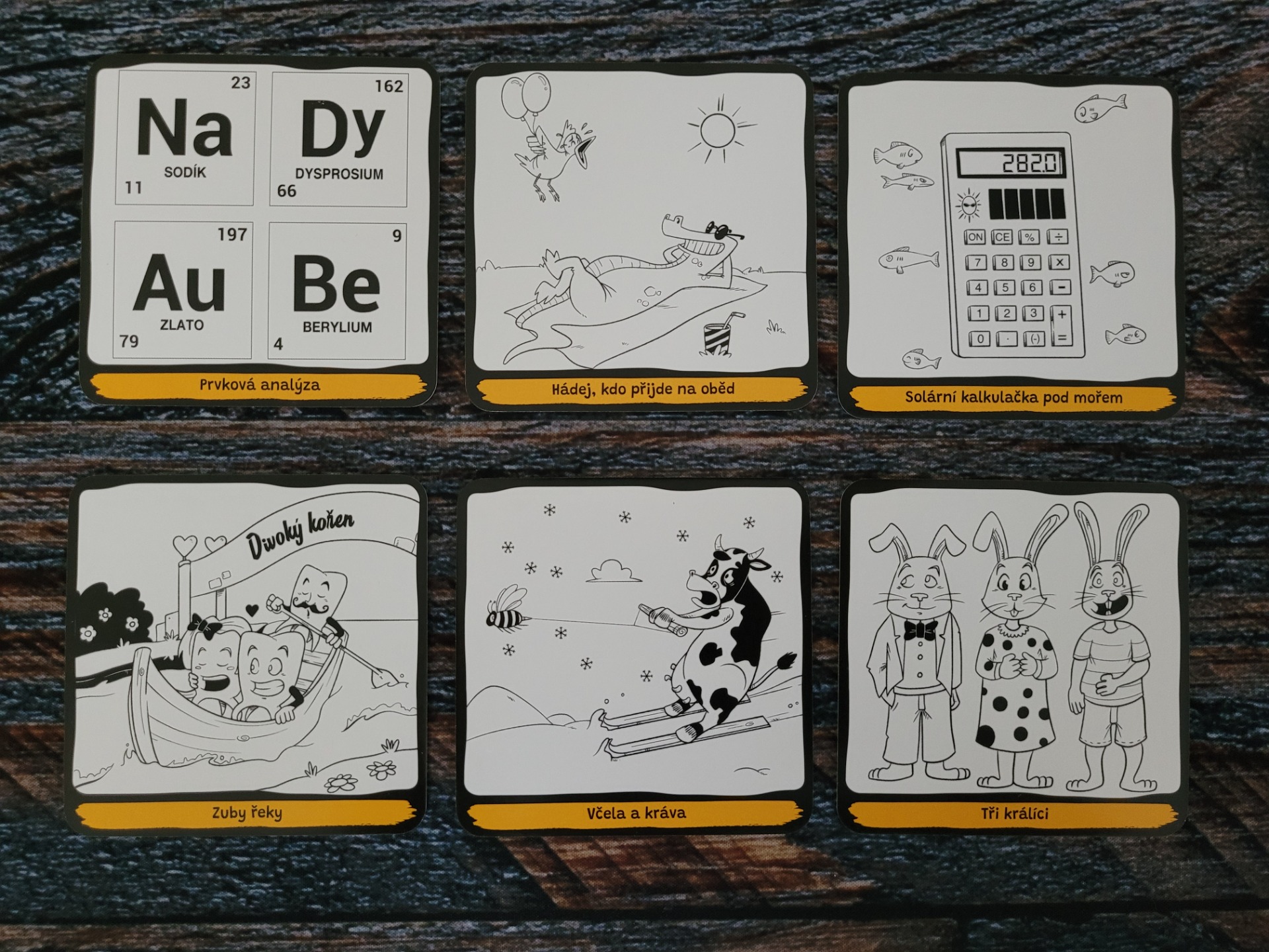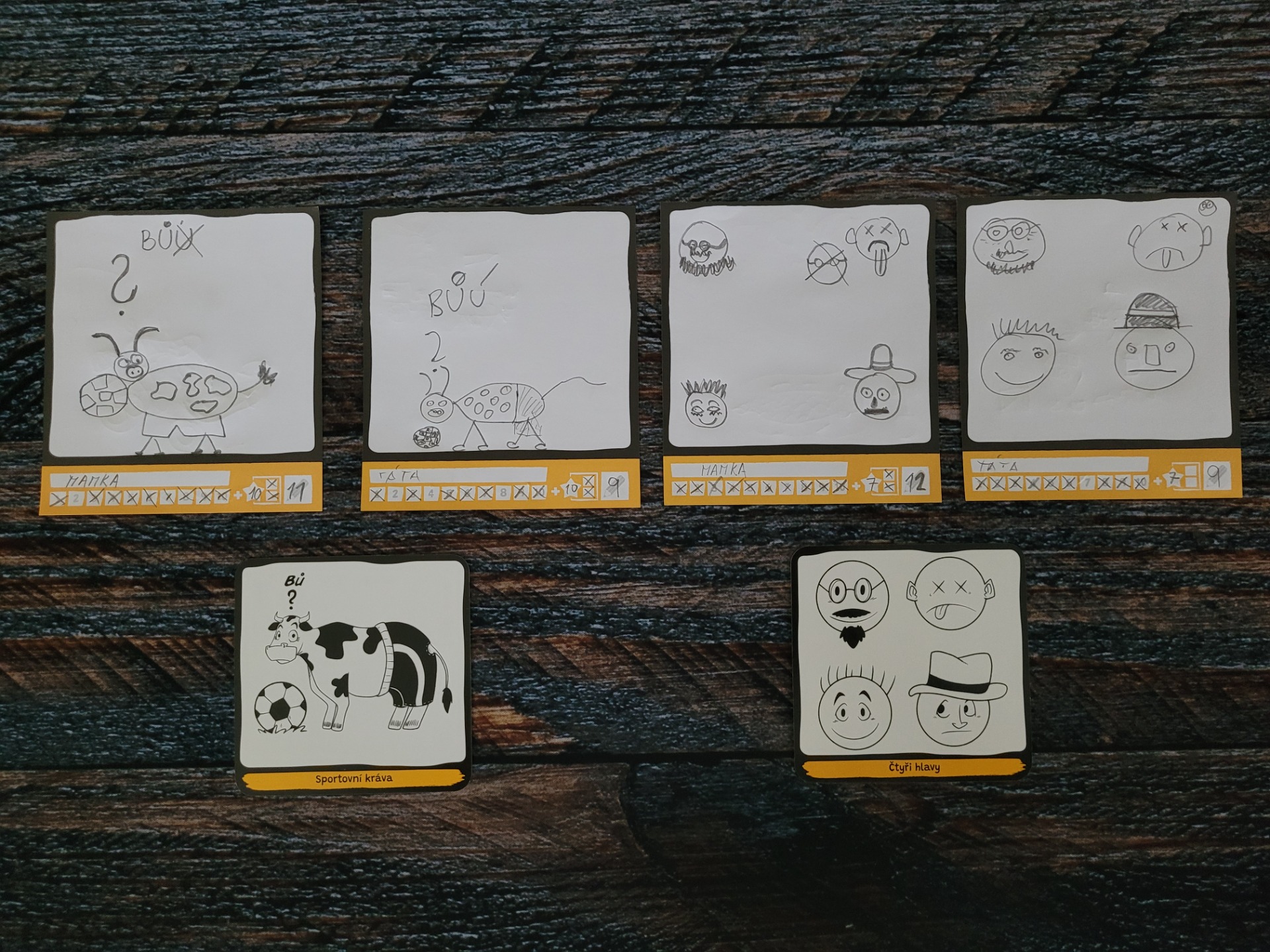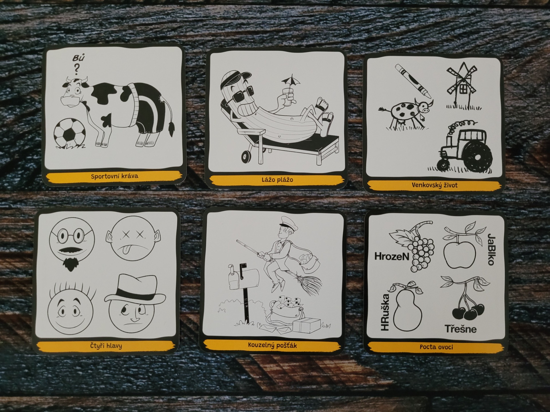 Kartiček s obrázky je dostatečné množství, aby se vám hraní jen tak neomrzelo a najdete na nich spoustu nápaditých a zábavných kreseb s různými tématy. Obrázky jsou černobílé a opravdu zdařilé. Kartičky mají super rozměr, který padne perfektně do ruky a navíc mají i pěknou gramáž, takže se jen tak neohnou. Po produkční stránce tak není co vytknout.