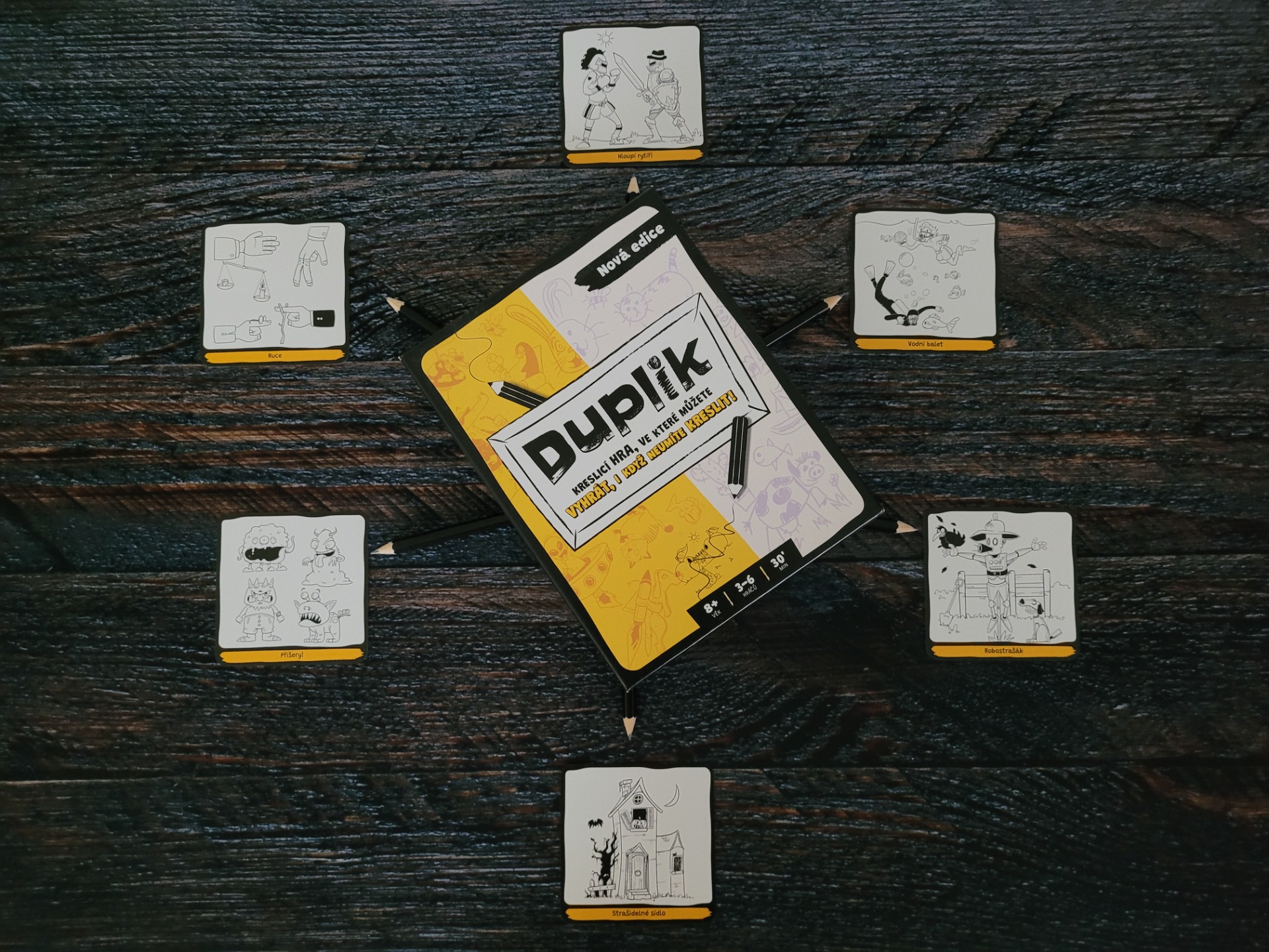 Mě Duplik také moc bavil a to opravdu kreslit neumím ani trochu. Je super mít kreslící hru, ve které nemusíte umět kreslit a přesto máte šanci na výhru. Vlastně čím míň talentu máte, tím víc se pobavíte. Kresby na kartách se mi líbí moc, jsou vtipné, neotřelé a nápadité.