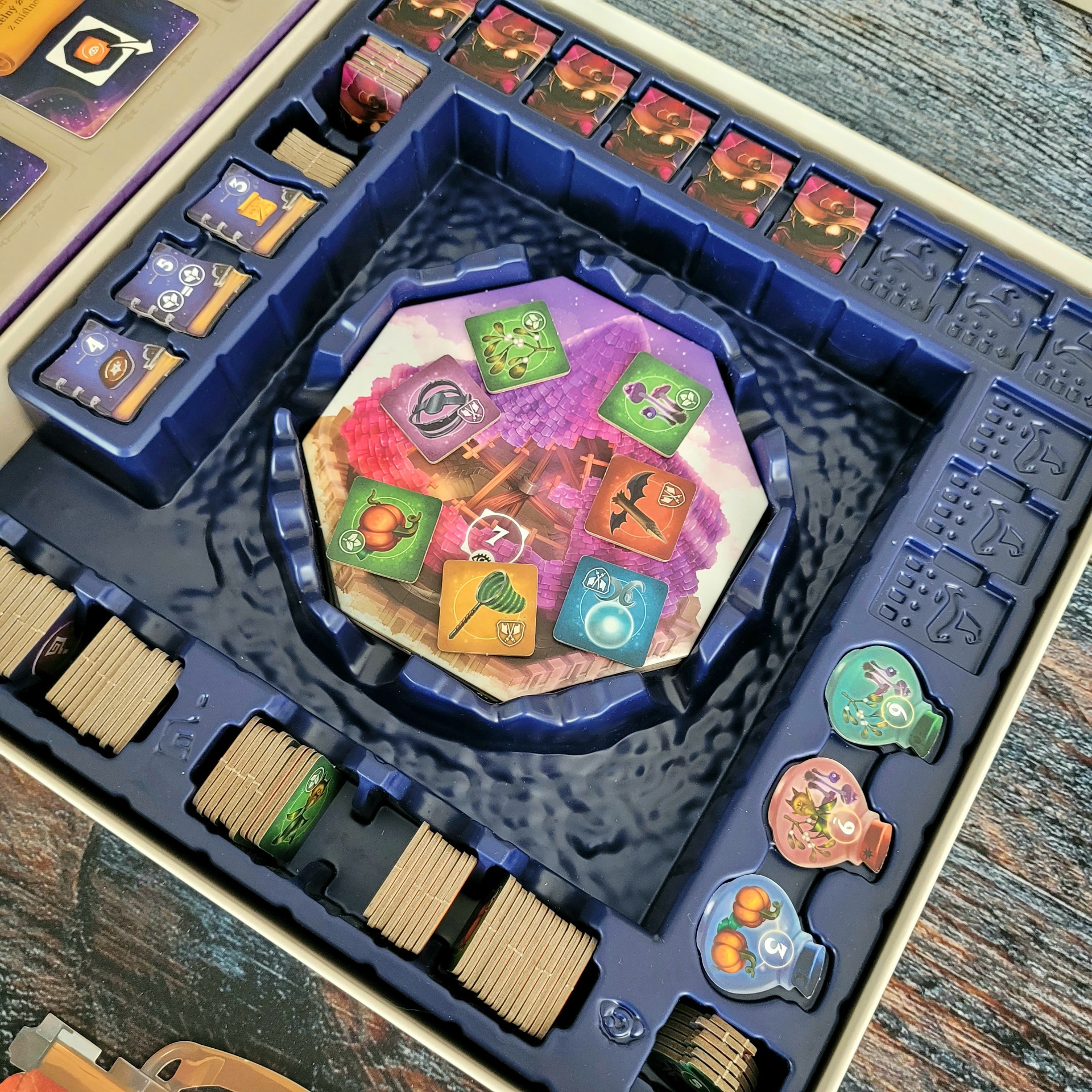 Speciální žetony se umístí do políček nad kartami kouzel.