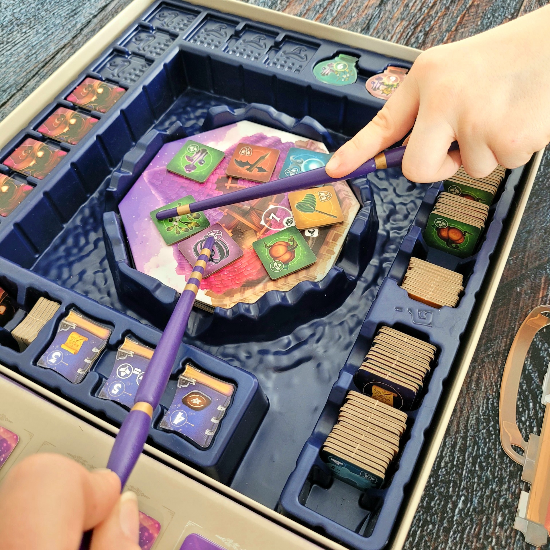Tato rychlá rodinná hra plná soubojů a sbírání předmětů v tu správnou chvíli je unikátní díky dřevěným kouzelným hůlkám, které mají různou sílu. Sílu značí zlaté proužky na hůlkách, v rozpětí 1 až 4, kdy jeden proužek označuje nejslabší hůlku a čtyři proužky naopak nejsilnější hůlku. Ve hře je tento prvek dobře vybalancován. Pokud se u jednoho z předmětů střetne více hůlek, nejsilnější hůlka získá předmět, ale hráč si svou hůlku vymění s hráčem, který měl nejslabší hůlku.