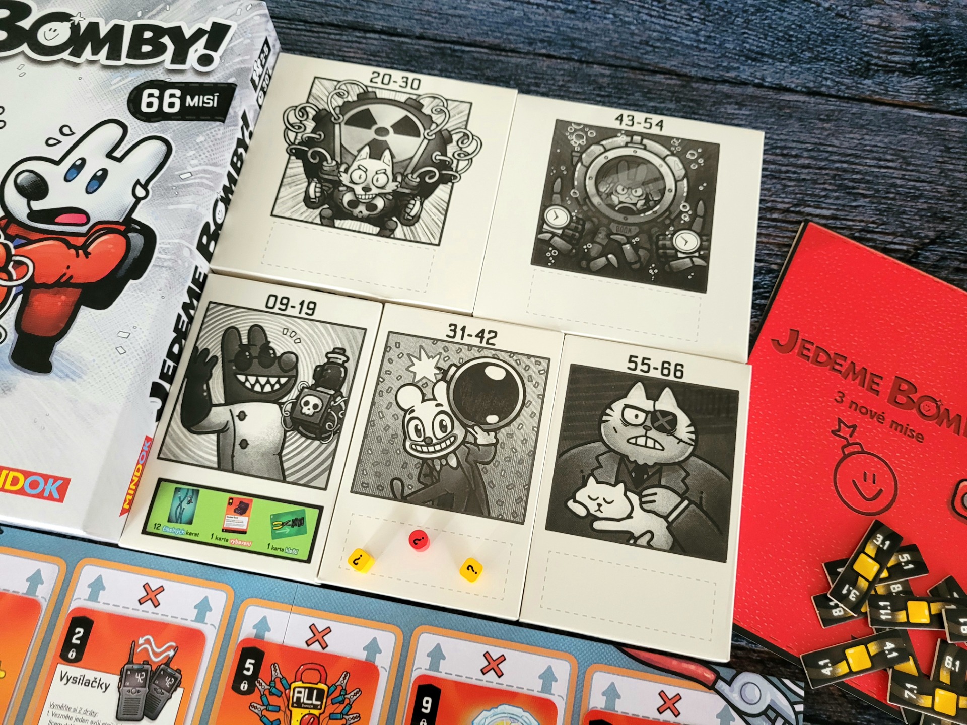 Doma jsem hrála Jedeme bomby! s manželem, a ve dvou hráčích je hra o poznání lehčí, přeci jen nemusíte rozjímat nad dalšími hráči, kdo asi jaké hodnoty drátů kde a zda je vůbec má. Ale přesto mě to baví a těším se na další mise, které vždy posunou celou hru o úroveň výš a také jsem zvědavá, co další krabičky ukrývají.