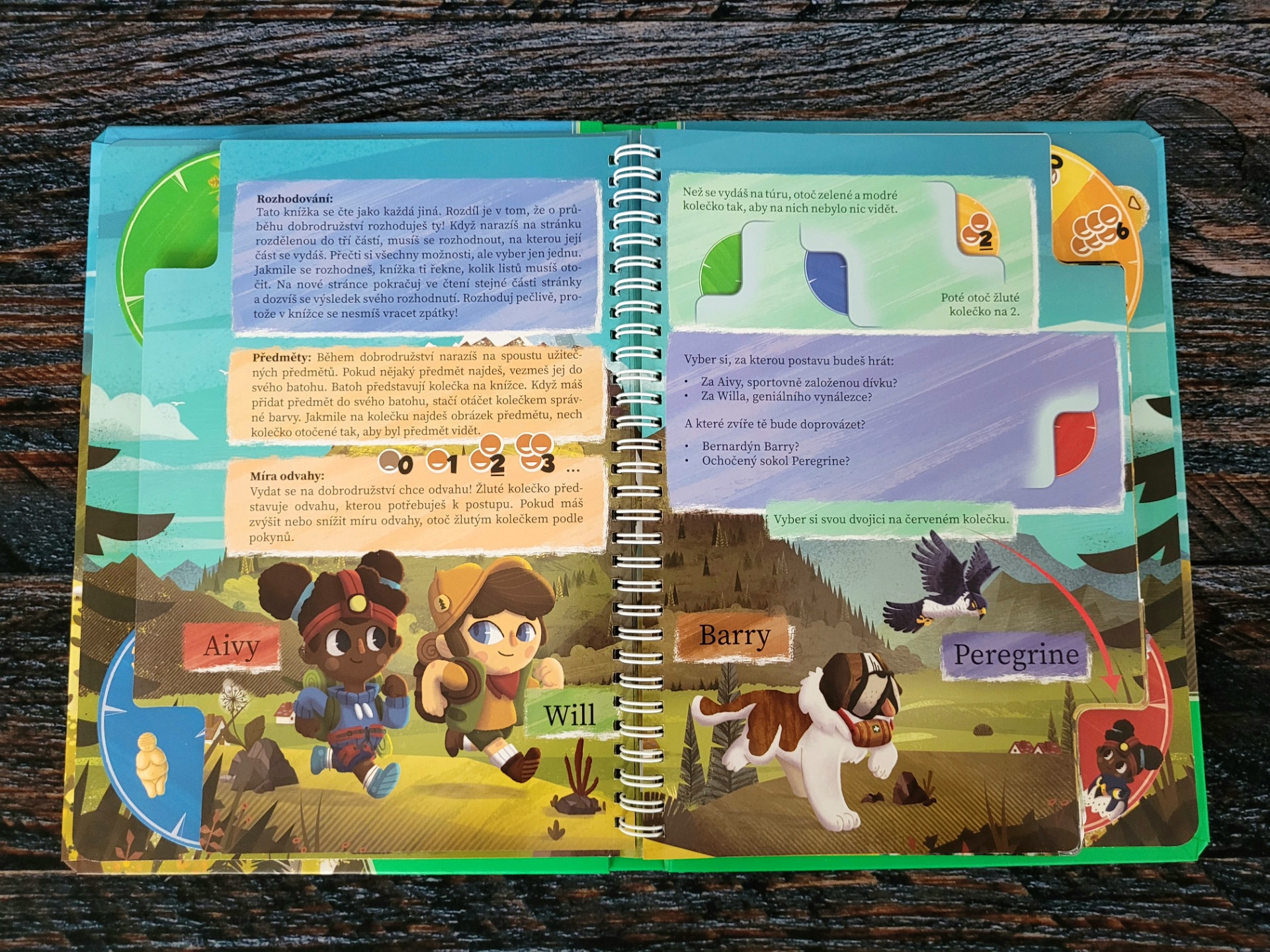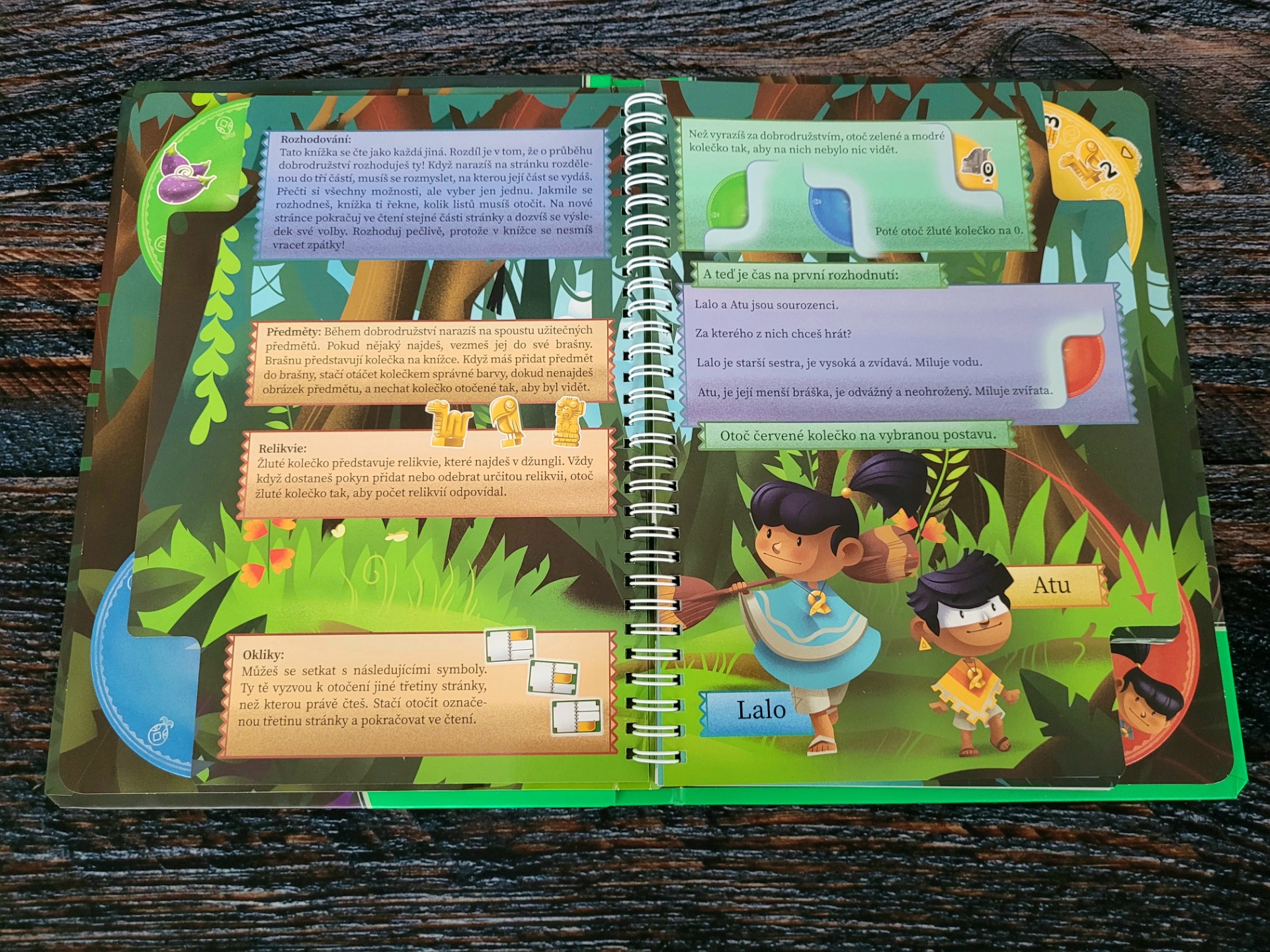 Hned na začátku každé z knih je potřeba přečíst si instrukce a na kolečkách v rozích desek knihy nastavit potřebné předměty, postavy nebo nechat některá z nich prázdná. Seznámíte se také s tím, jak knihou postupovat.