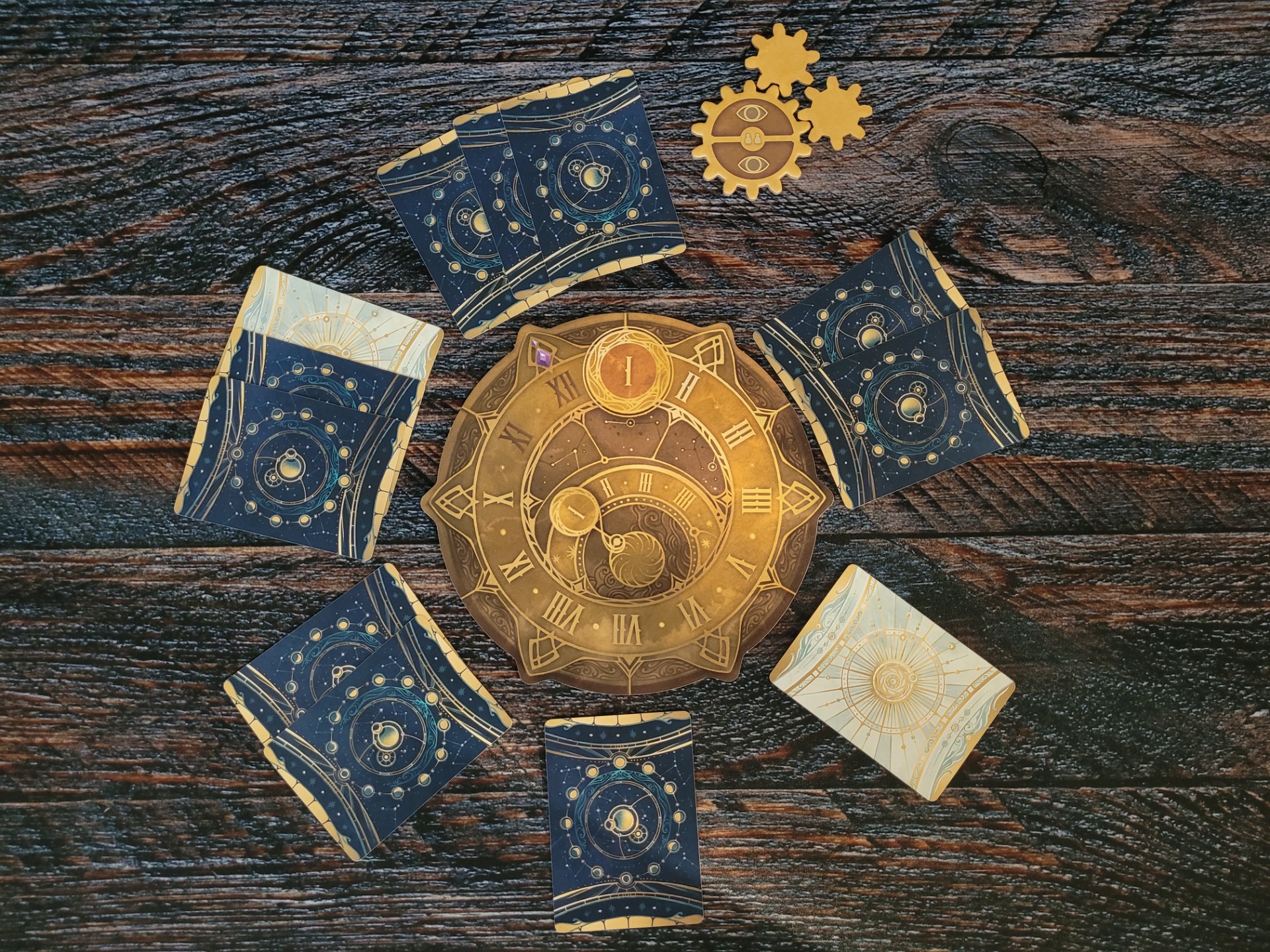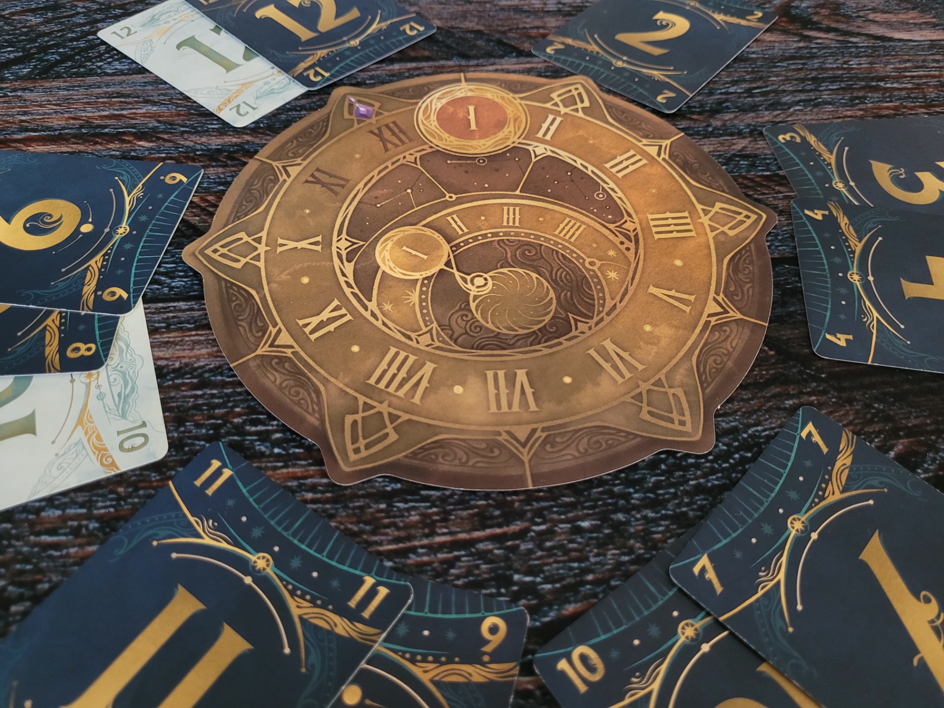 Výzvy budete plnit pomocí slunečních a měsíčních karet, které mají hodnoty 1-12 a přikládají se dle pravidel do jednotlivých segmentů hodin lícem dolů. Čísla jsou tedy vašim spoluhráčům i vám skrytá.