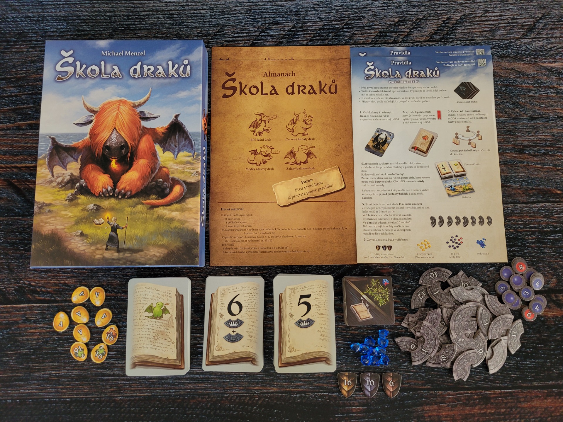 Škola draků je rodinná karetní hra, ve které se budete snažit získat takový počet druhů draků, jaký ukládá Kouzelná kniha a jejich vykládáním do setů budete získávat vítězné body.