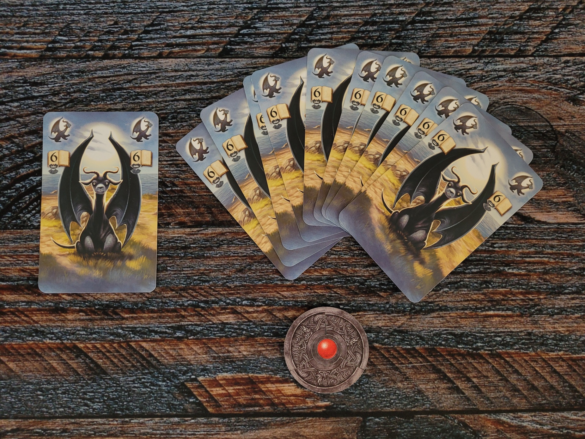 4. Získání odměn – za vyložení sad karet draků získá hráč vždy uvedenou odměnu. Popis všech odměn je uveden na zadní straně pravidel.