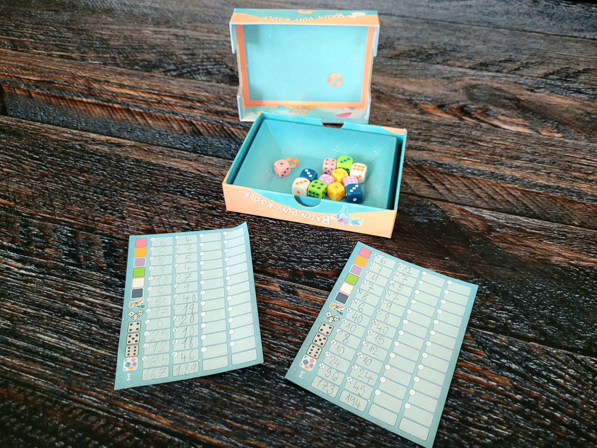 Zdá se to jednoduché, že? Ono po stránce pravidel také je, ale počkejte, až budete koukat do bazénu a všechny kostky se na vás budou dívat a volat: "Vyber si mě, vyber si mě!" Během té krátké chvilky vám v tom kostky udělají pěkný guláš a vy se nebudete moct dopočítat, co bude nejlepší zapsat.